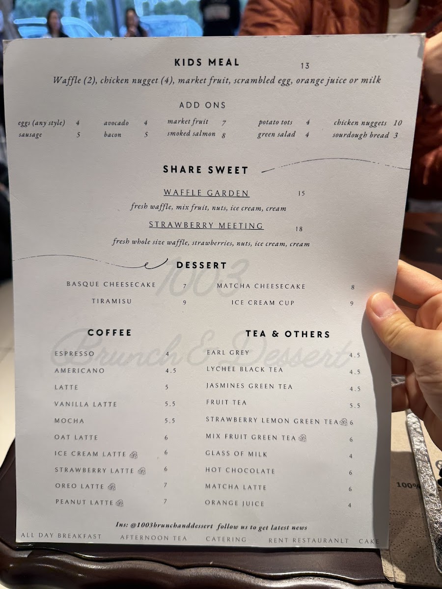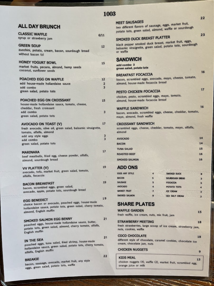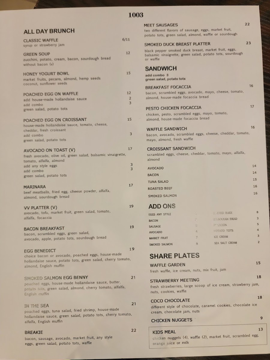 Overall, 1003 Brunch & Dessert offers a charming atmosphere and delectable dishes that are perfect for a relaxing brunch or dessert experience.